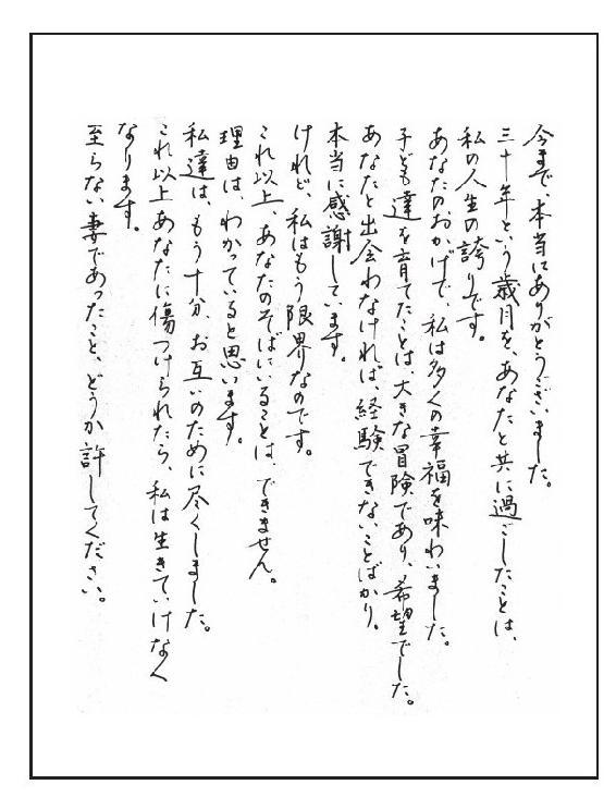 那个女人出现在山茶文具店的时候,是上个星期五临近打烊的时分。那个自称叶子的女人,整张脸都紧绷着,一眼望去就能看出是来请求代笔的客人。不,准确地说,她的表情更像是般若。在面无表情的背后,弥漫着一股烟霭般静谧的怒气。